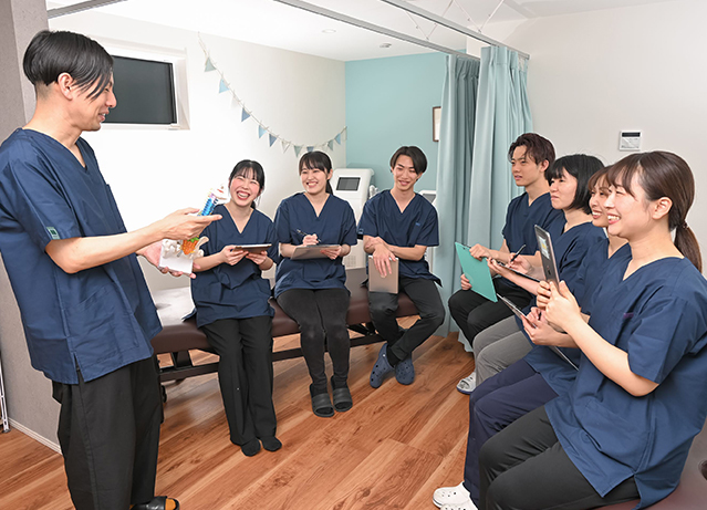 実際の施術を通じて生まれる疑問や気づきを、院内の仲間と共有し合える機会があります。学び合いながら、少しずつ力をつけていける環境です。